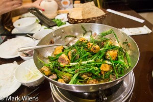 I enjoyed a number of different snail and shell dishes, including mud creeper snails in sweet coconut milk, Babylonia areolata coated in salt and chili, and Ốc tỏi, some kind of giant garlic snails roasted and seasoned with chili jam.