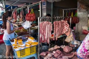 - Fresh meat outside Binh Tay Market